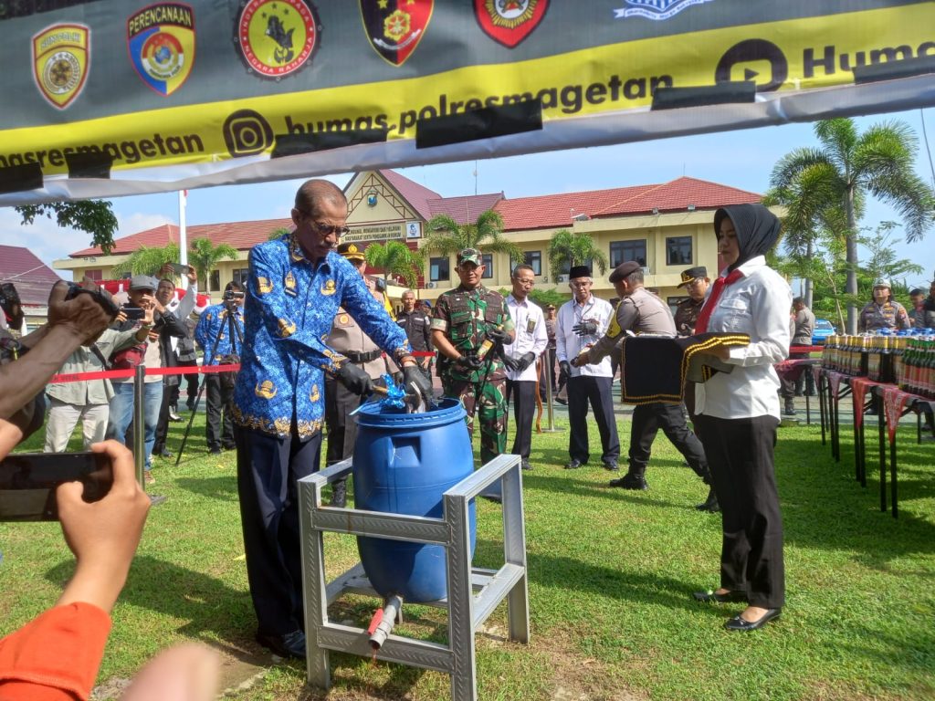 Bupati Magetan, Suprawoto saat dikonfirmasi awak media mengungkapkan, barang bukti yang hari ini dimusnahkan merupakan hasil penyitaan dalam rangka penindakan dan juga sekaligus upaya preventif pengamanan selama menjelang lebaran 2023.