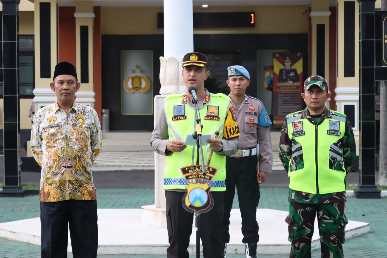“Lakukan pengamanan pada setiap giat keramaian, terutama yang melibatkan massa dalam jumlah besar. Pada sisi Kamseltibcar lantas, lakukan pengaturan lalu lintas untuk mengantisipasi masalah kemacetan dan pelanggaran serta kecelakaan lalu lintas yang dapat mengakibatkan korban, baik kerugian harta benda maupun jiwa,” tegas Kapolres Magetan.