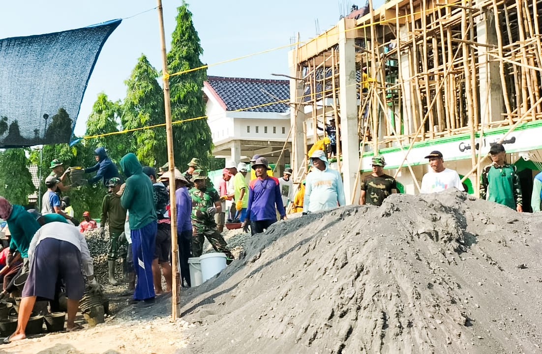 Bojonegoro, Jendelanusanews.Com, Jajaran Bintara Pembina Desa atau Babinsa Koramil 10/Kanor Kodim 0813 Bojonegoro, menggelar kegiatan karya bakti, gotong-royong membantu warga dalam pembangunan Masjid Al Muttaqin Desa Caruban Kecamatan Kanor Kabupaten Bojonegoro, Jawa Timur, Minggu (31/12/2023) pagi.