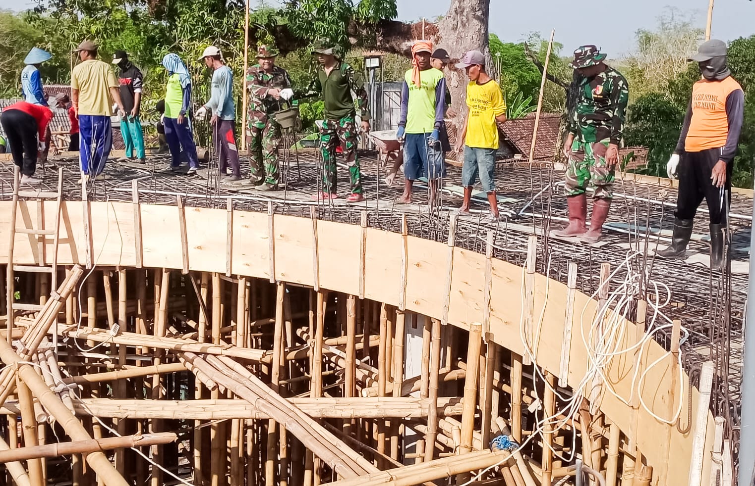 Bojonegoro JNN, – Jajaran Bintara Pembina Desa atau Babinsa Koramil 09/Sumberrejo Kodim 0813 Bojonegoro bersama warga masyarakat gotong-royong membantu pengecoran pembangunan Masjid Baitul Muttaqin Dusun Barong Desa Ngampal Kecamatan Sumberrejo, Kabupaten Bojonegoro.