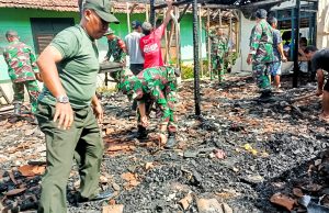 Dari pantauan, terlihat material-material kayu yang sudah hangus terbakar itu diangkat dan dibersihkan oleh anggota TNI bersama dengan warga setempat. Dalam kegiatan ini, Babinsa Koramil 0813-24/Temayang juga memberikan santunan dan bantuan paket sembako kepada korban yang rumahnya terbakar(sk)