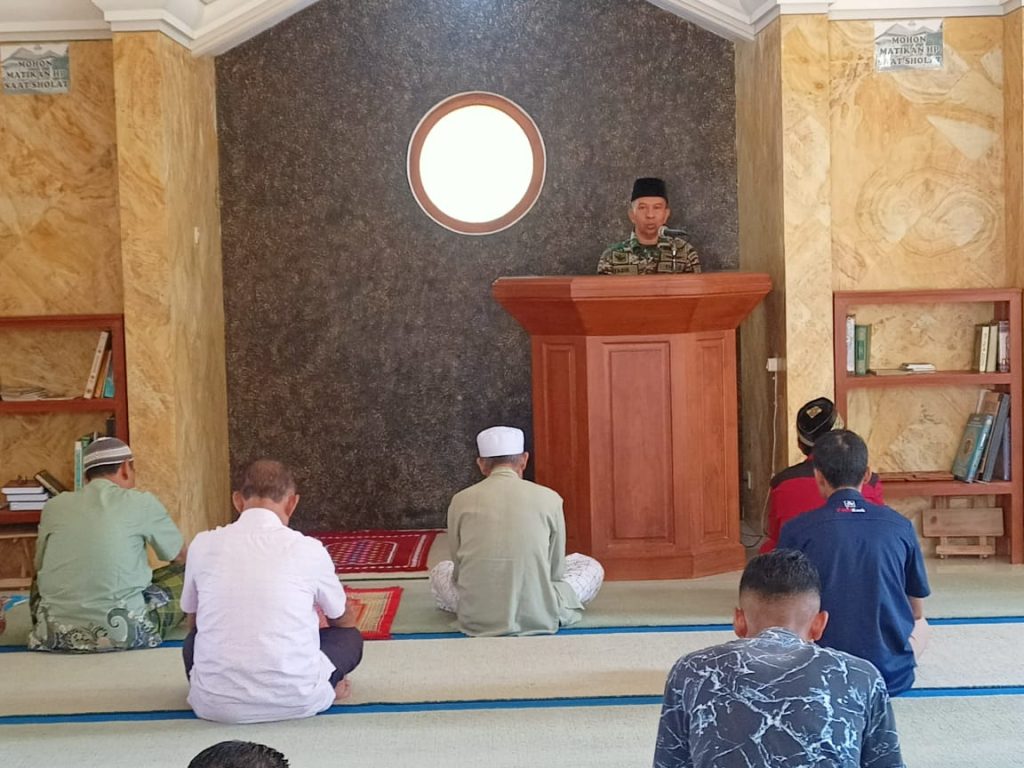 Magetan, Jendelanusanews com – Sertu HM Tasir, tidak hanya dikenal sebagai seorang Babinsa di Koramil 0804/01 Magetan, tetapi juga dikenal piawai dalam ilmu agama baik sebagai Imam maupun sebagai Khatib saat shalat Jumat. Seperti halnya kali ini Sertu H.M.Tasir, mengisi khutbah Jumat di Masjid An-Nur, Dusun Onggoprayan Kelurahan: Kepolorejo Kecamatan, Magetan, Kabupaten Magetan Kelurahan Kepolorejo Kecamatan/Kabupaten Magetan, Jumat (09/06/2023).