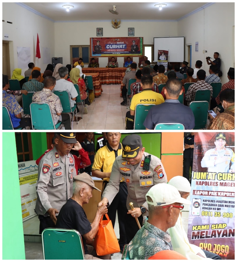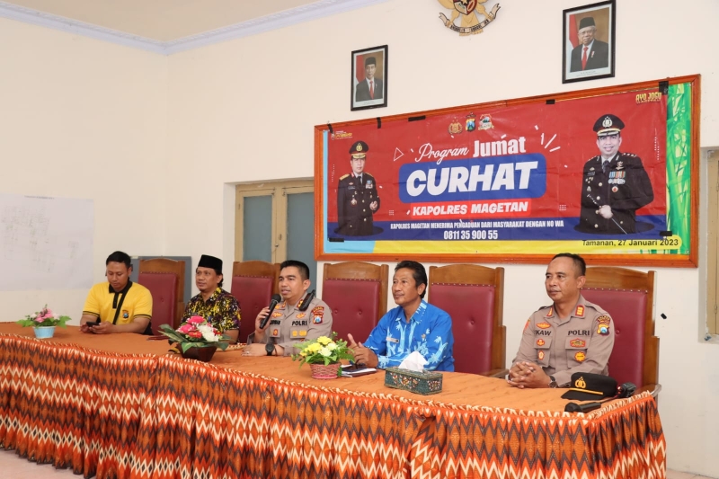 Magetan, jendelanusanews.com – Seperti diketahui bahwa setiap minggunya, Kepolisian Resor (Polres) Magetan rutin menggelar program Jumat Curhat untuk mendengar keluhan dan aspirasi dari masyarakat. Kali ini, Polres Magetan menggelar Jumat Curhat bertempat di Balai Desa Tamanan, Kecamatan Sukomoro, Magetan, Jumat (27/1/2023).