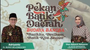 Seperti yang dilakukan pada hari Rabu hingga Sabtu tanggal 05-08 Juni 2024 mendatang. Pemkab Bojonegoro menggelar acara Pekan Batik Daerah Budaya Bangsa yang bertemakan “Batikku, Batikmu, Batik Kita Semua”. Akan dihadiri oleh pengrajin batik dari Kab/Kota se Jawa Timur untuk mempromosikan dan memperkenalkan wastra kriya dari tiap-tiap daerah.