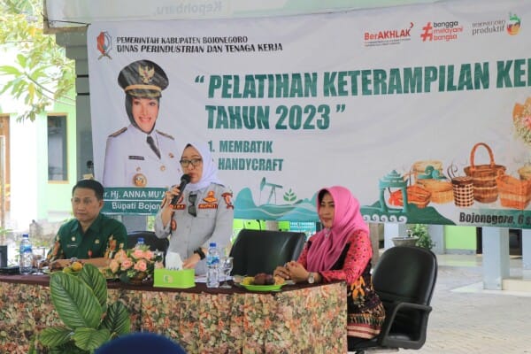 JNN Bojonegoro Dinas Perindustrian dan Tenaga Kerja (Disperinaker) Kabupaten Bojonegoro menyelenggarakan kegiatan pelatihan keterampilan kerja kejuruan membatik dan handycraft di Kecamatan Kepohbaru. Pelatihan dilaksanakan selama 6 hari dan dimulai Kamis (6/7/2023) hingga Selasa (11/7/2023).