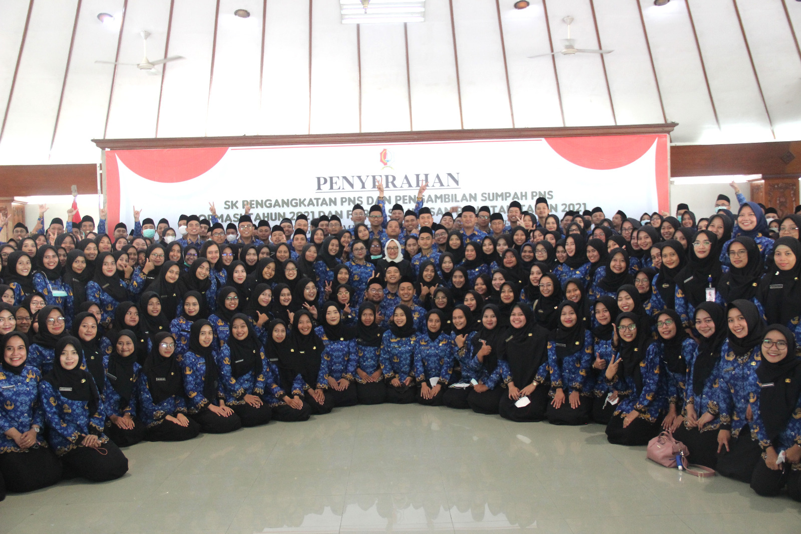 “Adapun jumlah peserta kegiatan pelaksanaan Penyerahan SK Pegawai Negeri Sipil (PNS), pengucapan sumpah/hjanji PNS formasi tahun 2021 dan formasi lulusan PKN STAN tahun 2021 sebanyak 348 orang,” ujarnya.