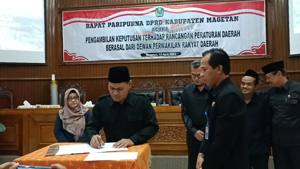 “Setelah melalui rangkaian pembahasan dan fasilitasi, akhirnya hari ini DPRD Magetan mengesahkan jadi Perda,” ujar Sujatno.