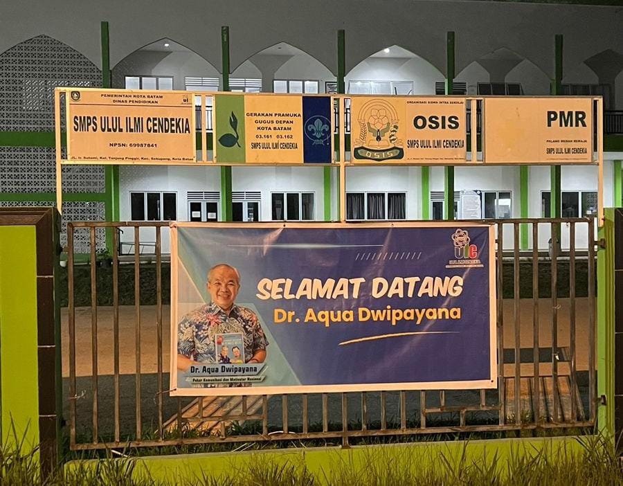 Dr Aqua Dwipayana mendapat undangan langsung dari Ketua Yayasan Pondok Pesantren Ulul Ilmi Cendikia Batam Dr Hardi Selamat Hood. Mantan anggota Dewan Perwakilan Daerah itu sangat senang dengan kehadiran motivator ulung tersebut.