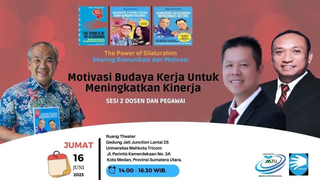 Terakhir Jumat 16 Juni 2023 lalu. Dr Aqua Dwipayana sebelum kembali ke Bogor, Jawa Barat, menyampaikan Sharing Komunikasi dan Motivasi sebanyak dua sesi dengan tajuk berbeda di hadapan unsur sivitas akademika Universitas Mahkota Tricom Unggul Medan, Sumatera Utara.