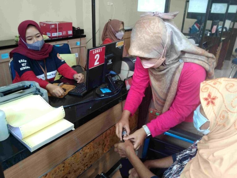 Para pasien yang datang ini akan direkam data biometrik-nya atau proses enrollment, sehingga pada kehadiran berikutnya ketika peserta tersebut dipindai sidik jarinya maka data kepesertaan akan mengenalinya sesuai dengan data kepesertaan yang bersangkutan.