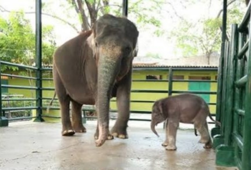 Menteri Sosial (Mensos) Tri Rismaharini, yang saat itu menjabat Wali Kota Surabaya, bersama cucunya bernama Gwen, melihat gajah mungil yang masih berusia tujuh hari itu. Dan Gwen memberi nama Dumbo pada anak gajah tersebut. (brint)