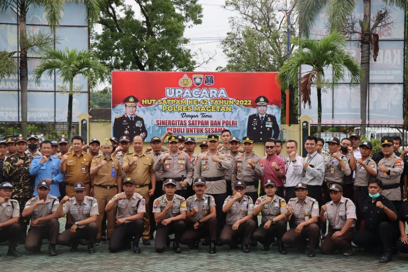 Hadir dalam upacara, PJU Polres, Para Pimpinan/Pengelola Badan Usaha Jasa Pengamanan dan Asosiasi Jasa Pengamanan diantaranya dari Bank BRI, Bank Jatim, Bank BCA, Bank Eka Dharma, PT BAJA, PDAM, RSUD Magetan, RS Sekarwangi, RS Melati serta peserta upacara gabungan anggota Bhabinkantibmas dan seluruh personil Satpam/Security, serta Senkom .