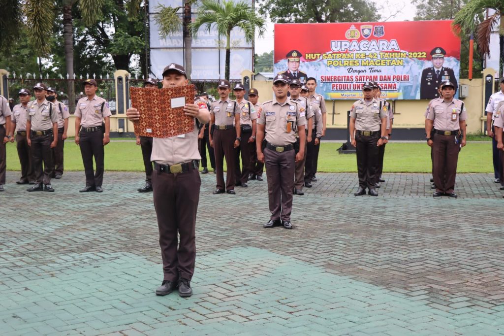 Magetan, jendelanusanews.com – Bertempat di Lapangan apel Polres Magetan dilaksanakan upacara peringatan hari ulang tahun Satpam ke – 42, bertindak selaku Irup Kapolres Magetan AKBP Muhammad Ridwan.