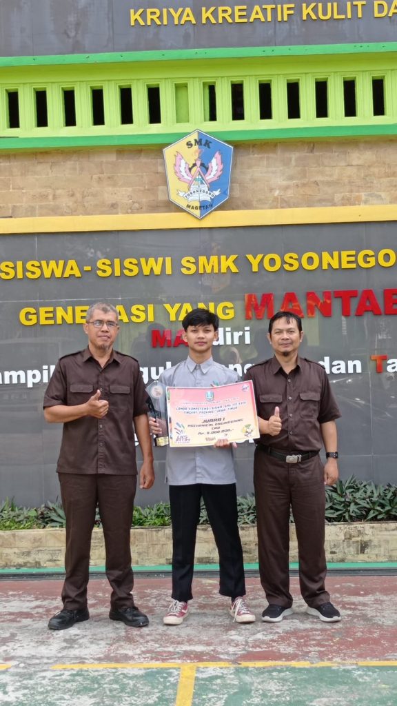 “Alhamdulillah tiga tahun berturut-turut SMK Yosonegoro meraih juara di Lomba Kompetensi Siswa tingkat provinsi bidang mechanical engineering CAD, dan insyaallah akan melaju di tingkat nasional,” ujar Triadmo Budi Prasetyo.