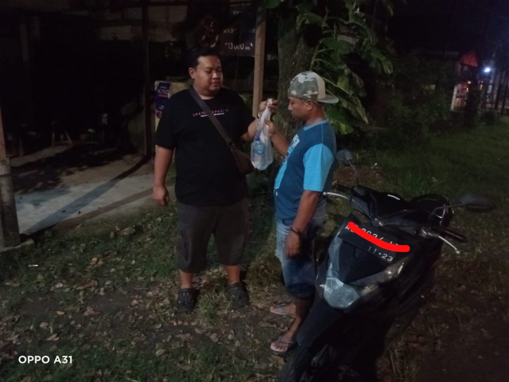 Menurut keterangan, kejadiannya saat anggota reskrim Polsek melaksanakan giat patroli rutin malam hari, mencurigai seorang laki-laki sedang membawa 2 (dua) botol yang ditaruh dalam tas plastik warna putih yang digantung distang sepeda motor.