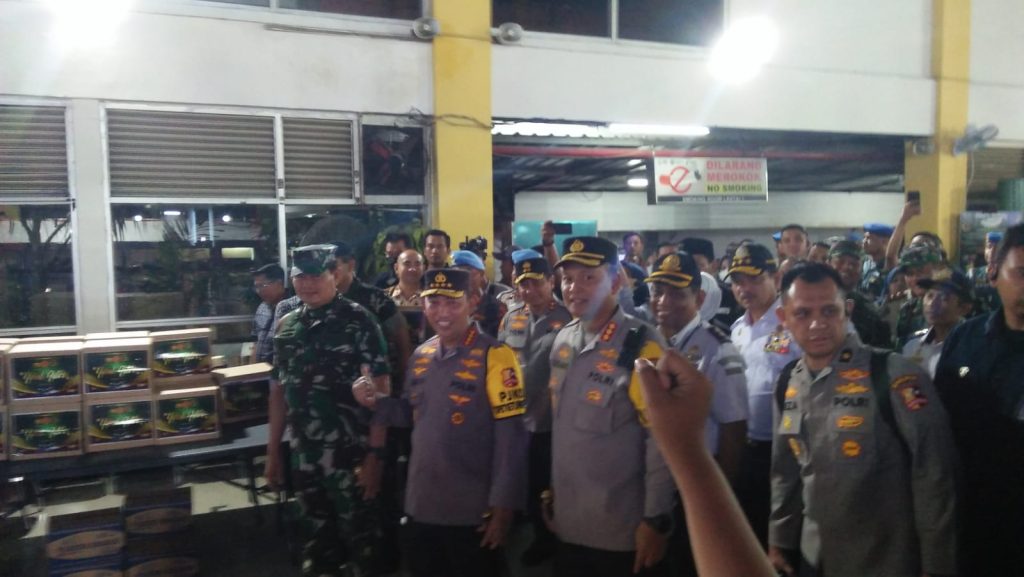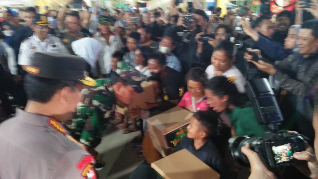 Di sela sela sidak tersebut KAPOLRI dan PANGLIMA TNI mengadakan kegiatan pemberian bantuan sembako kepada beberapa pemudik dan warga di sekitar Terminal Purabaya.(Andk&Boni)