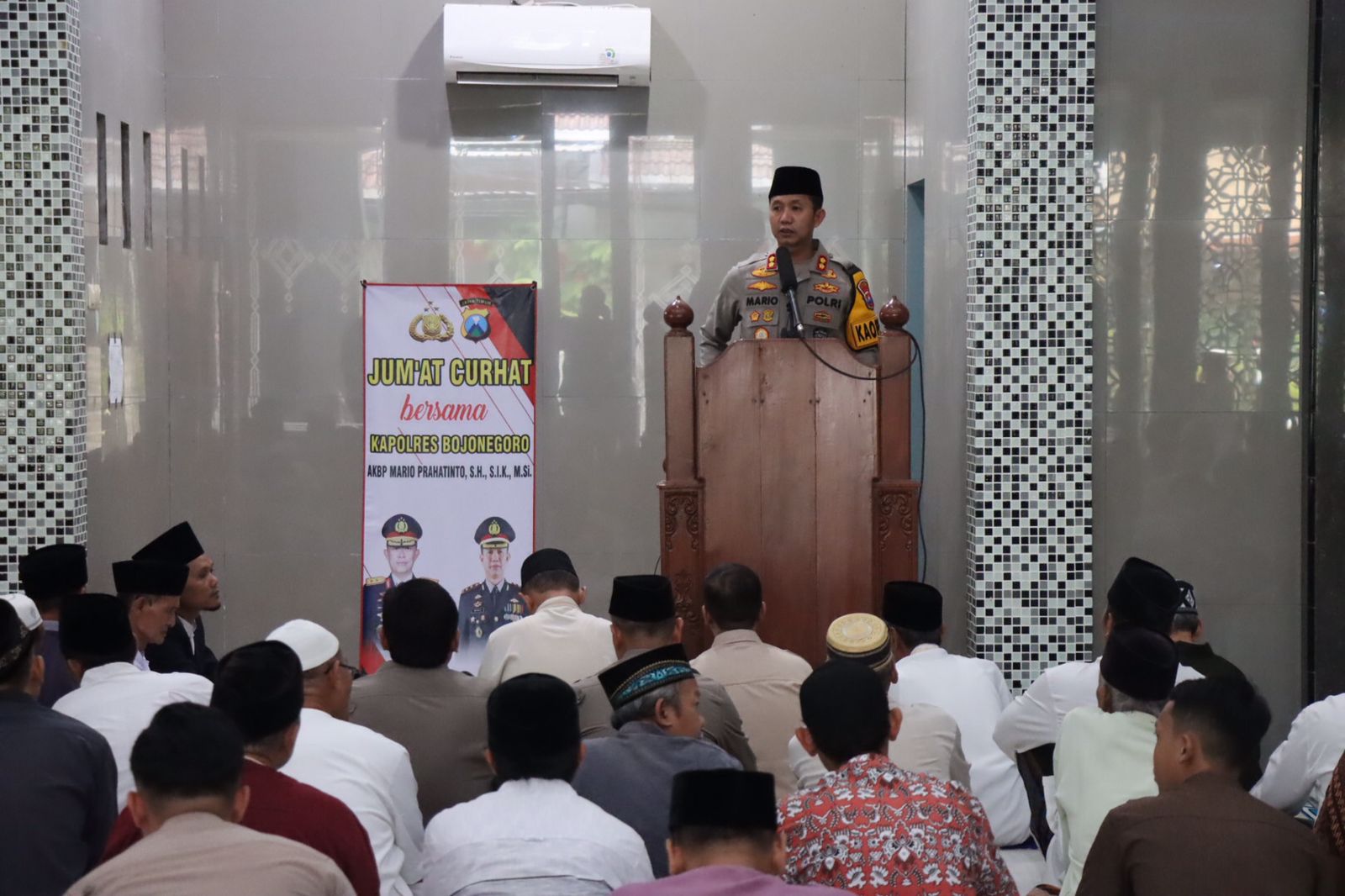 Kapolres Bojonegoro mengatakan bahwa kegiatan Jum’at Curhat merupakan program Mabes Polri dengan menampung aspirasi atau keluhan masyarakat yang segera ditindak lanjuti.