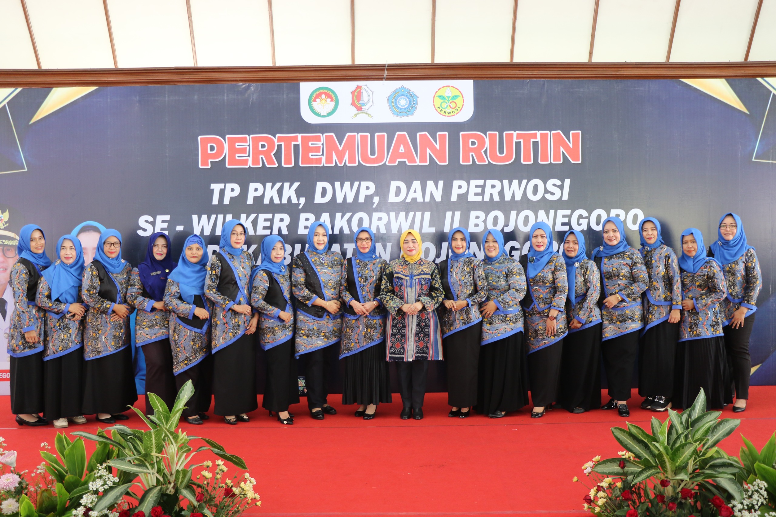 Bojonegoro, Jendelanusanews.Com.Kabupaten Bojonegoro menjadi tuan rumah pelaksanaan pertemuan rutin Tim Penggerak (TP) PKK, Dharma Wanita Persatuan (DWP), dan PERWOSI se-wilayah Kerja Bakorwil II Bojonegoro.