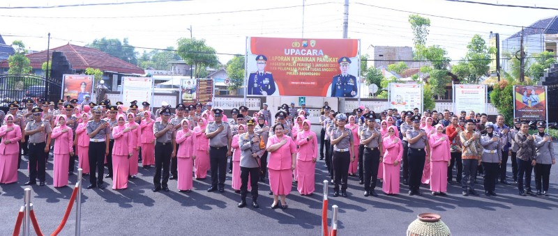Personel yang naik pangkat sejumlah 66, AKP ke Kompol 2 personel, IPTU ke AKP 3 personel, IPDA ke IPTU 9 personel, Aiptu ke IPDA Pengabdian 2 personel, AIPDA ke AIPTU 13 personel, BRIPKA ke AIPDA 1 personel, BRIGADIR ke BRIPKA 7 personel, BRIPTU ke BRIGADIR 24 personel, BRIPDA ke BRIPTU 5 personel.