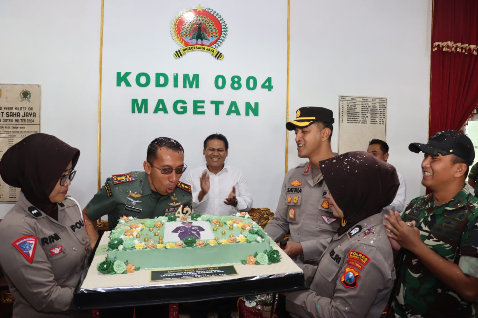 Dalam suasana yang penuh keakraban dan kebersamaan, Kapolres Magetan datang bersama beberapa anggota kepolisian membawa kue ulang tahun yang telah dihiasi dengan lilin. Sesampainya di Makodim, Kapolres dan rombongan langsung disambut hangat oleh Letkol [Nama Dandim] yang terlihat terkejut dan bahagia atas kejutan tersebut. “Ini adalah bentuk penghormatan dan persaudaraan antara TNI dan Polri di Magetan. Semoga sinergi yang telah terjalin baik selama ini semakin erat,” ungkap AKBP Satria Permana.