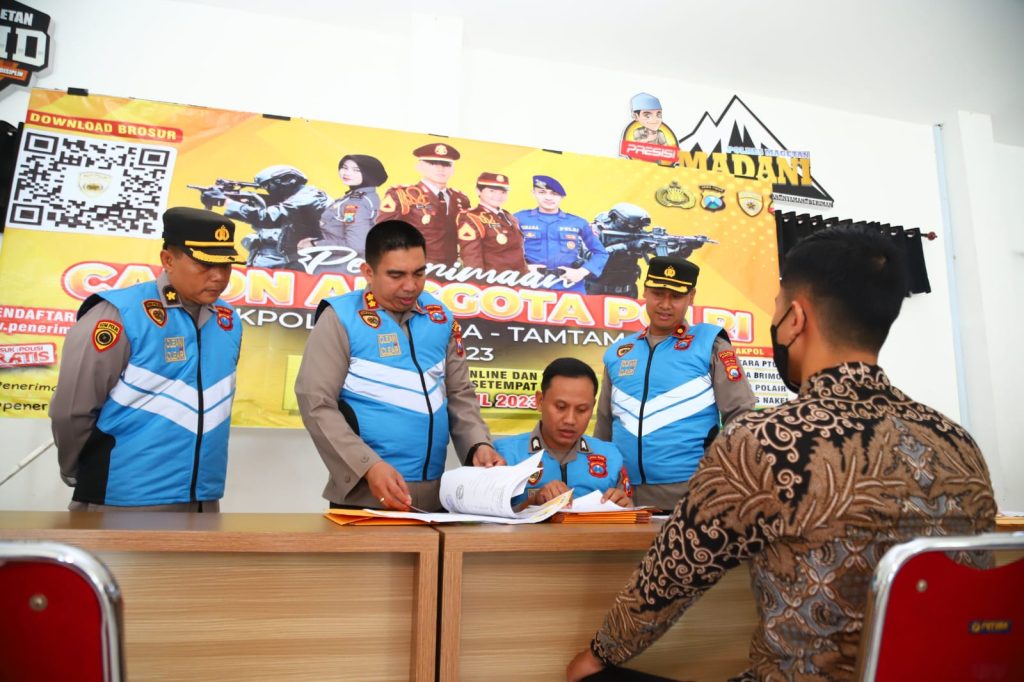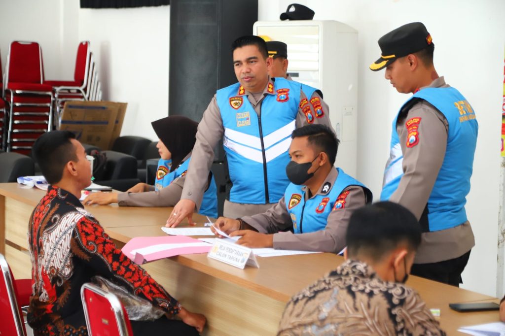 Kapolres mengatakan kepada peserta dan panitia serta pengawas dalam penerimaan anggota Polri jika pihaknya memegang teguh prinsip BETAH yaitu bersih, transparan, akuntabel, humanis serta clear & clean, bebas KKN, sekaligus melakukan pengawasan langsung terhadap kegiatan.