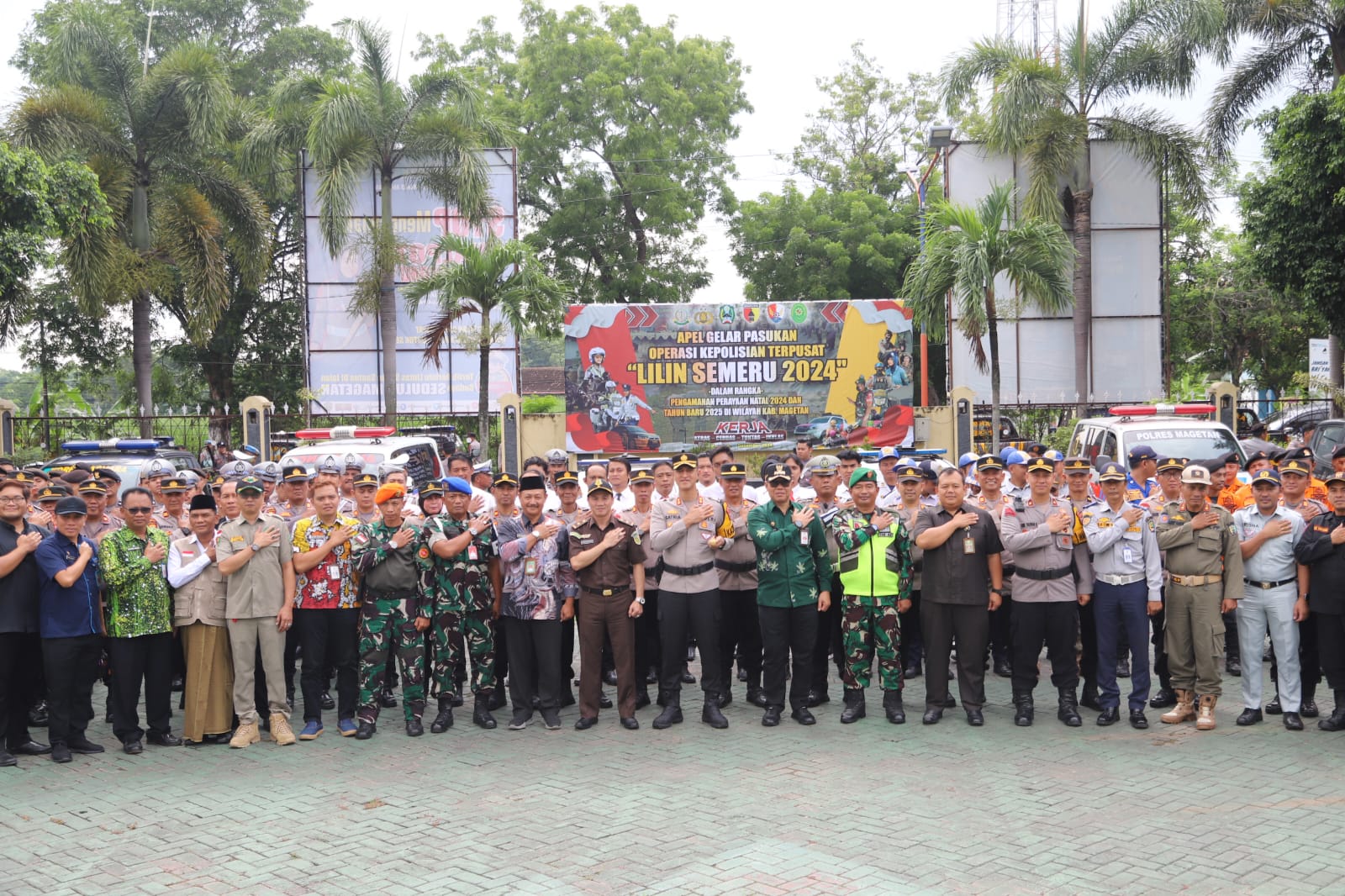 Kegiatan ini merupakan langkah awal dalam rangka pengamanan perayaan Natal 2024 dan Tahun Baru 2025 di Kabupaten Magetan. Apel ini diikuti oleh pasukan gabungan yang terdiri dari TNI-Polri, Satpol PP, Dinas Perhubungan, Dinas PUPR, Dinas Kesehatan, BPBD, PMI, RAPI, Banser, Senkom, dan Kokam.
