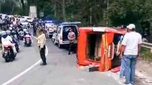 “Kendaraan Isuzu Elf No Pol S 7283 A yang dikemudikan oleh Supriyanto melaju dari arah barat ke timur. Sesampainya di TKP, kendaraan mengalami kendala, gangguan rem sehingga oleng dan terguling ke kanan,” jelas AKP Budi Kuncahyo.