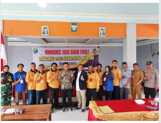 Magetan, jendelanusanews.com – Menggelar Konggres Luar Biasa (KLB) Asosiasi Kabupaten (Askab) PSSI Magetan, Ketua DPRD Kabupaten Magetan Sujatno, resmi terpilih sebagai Ketua Askab PSSI tahun 2023 s.d 2028 setelah dilakukan Aklamasi, Acara tersebut bertempat di Aula Pertemuan Desa Bogem, Kecamatan Sukomoro, Selasa (21/03/23).