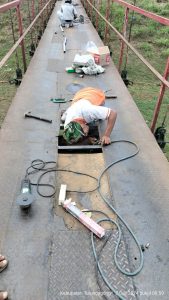 Kemudian kami bersiap membenahi jembatan kami membawa alat berupa alat las genset serta lembaran plat besi yang dibutuhkan kurang lebih selebar setengah lembar,