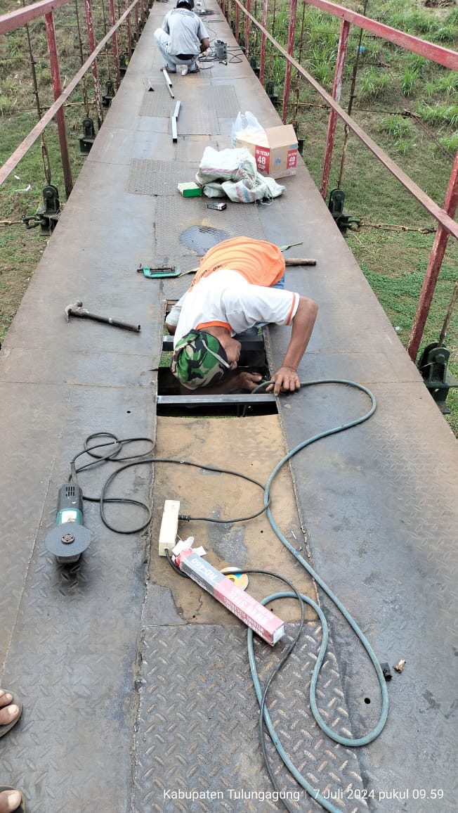 Selang beberapa waktu ada petugas yang datang mengaku dari dinas PUPR Tulungagung,dan juga sambil membawa alat las serta plat besi selebar kurang lebih 30 x40 cm jelas jelas kusnadi