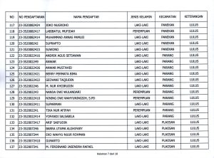 Usai seleksi, sebanyak 182 calon PPK dinyatakan lulus dan masuk di tahap tes wawancara dan sebanyak 140 calon dinyatakan tidak lulus. informasi ini sesuai dengan surat Pengumuman KPU Magetan nomor 13/PP.04-02 Pu/3520/2024 yang diterbitkan hari Kamis (9/5/2024). Berikut pengumuman dan nama-nama calon PPK yang dinyatakan lulus: