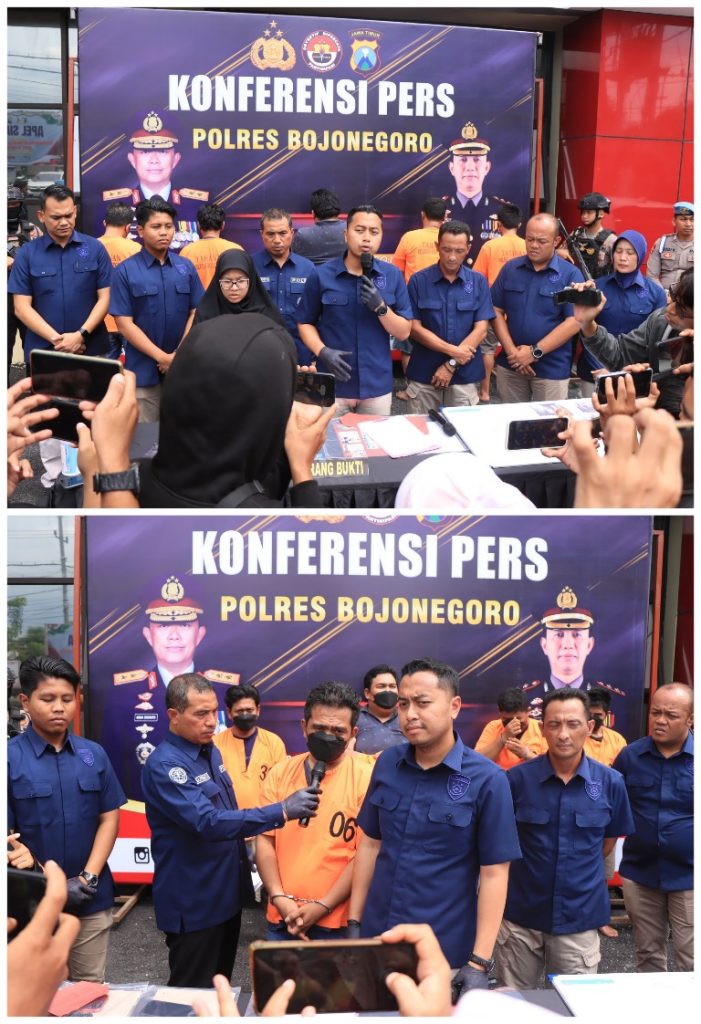 Saat Konferensi Pers, Kapolres Bojonegoro, AKBP Mario Prahatinto, SH, SIK, M.Si melalui Kasat Reskrim, AKP Fahmi Amarullah menyampaikan bahwa pihaknya telah berhasil mengungkap serta menangkap pelaku kasus pemerasan yang dilakukan sekelompok orang yang mengaku oknum media.