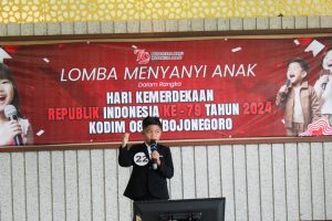 BOJONEGORO, JNN. Com. Untuk menyambut, serta menyemarakkan Hari Ulang Tahun (HUT) Kemerdekaan Republik Indonesia ke- 79 tahun 2024, Komando Distrik Militer (Kodim) 0813 Bojonegoro menyelenggarakan Lomba Menyanyi Anak U-10. Tidak hanya itu, lomba balap kelereng dan makan krupuk juga ikut meramaikan lomba Agustusan yang digelar di Markas Kodim setempat.