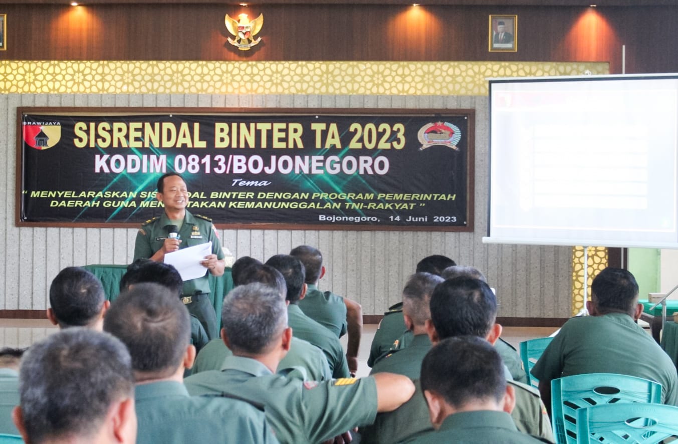 Dandim 0813 Bojonegoro Letkol Arm Arif Yudo Purwanto, dalam sambutanya yang dibacakan Kepala Staf Kodim (Kasdim) 0813 Bojonegoro Mayor Kav Sony Ranu Utama, menyampaikan, kegiatan Sisrendal Binter merupakan kegiatan program kerja yang rutin dilaksanakan setiap tahun, agar pelaksanaan pembinaan teritorial diwilayah tercapai secara optimal yang selaras dengan program pemerintah daerah.