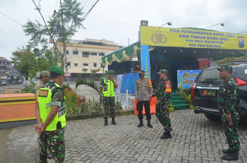 Saat meninjau Posko Nataru, Dandim 0804/Magetan berdialog dengan personel yang bertugas, menanyakan kondisi, situasi mulai dari perayaan Natal hingga menjelang Tahun Baru 2023 dan juga menanyakan kesehatan para personel, karena ini menjadi faktor penting untuk menunjang saat dalam bertugas diantaranya TNI, Polri, Dishub, BPBD, dan Kesehatan.