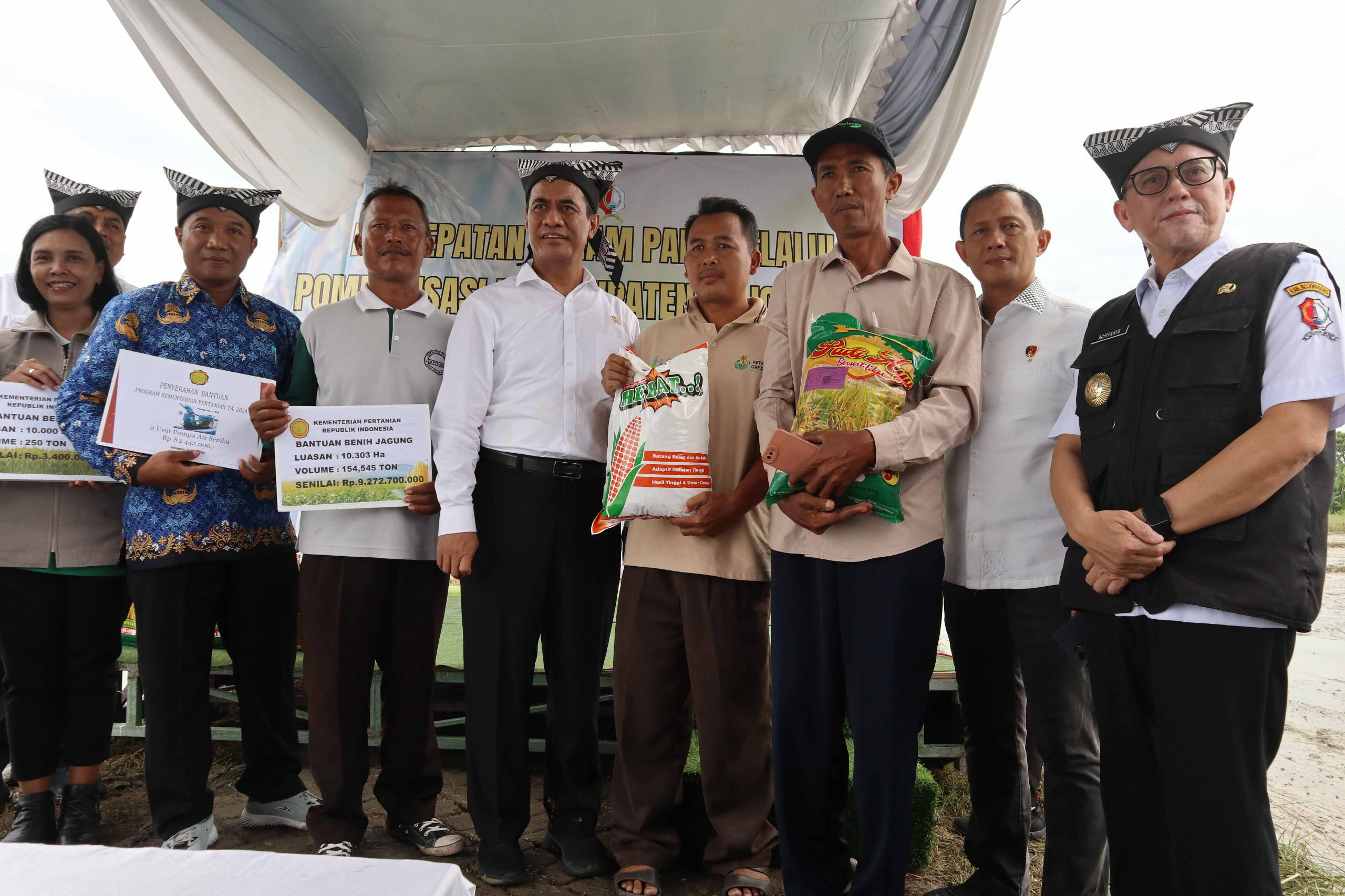 Dalam kunjungan kerja ini, Menteri Pertanian RI juga meninjau pompanisasi serta melihat langsung proses penanaman padi. Selain itu juga menyerahkan bantuan benih padi dan jagung. Pemerintah Kabupaten Bojonegoro juga sekaligus mempromosikan atribut budaya dengan memakai udheng khas Samin Kabupaten Bojonegoro bersama seluruh tamu undangan dari pemerintah pusat.