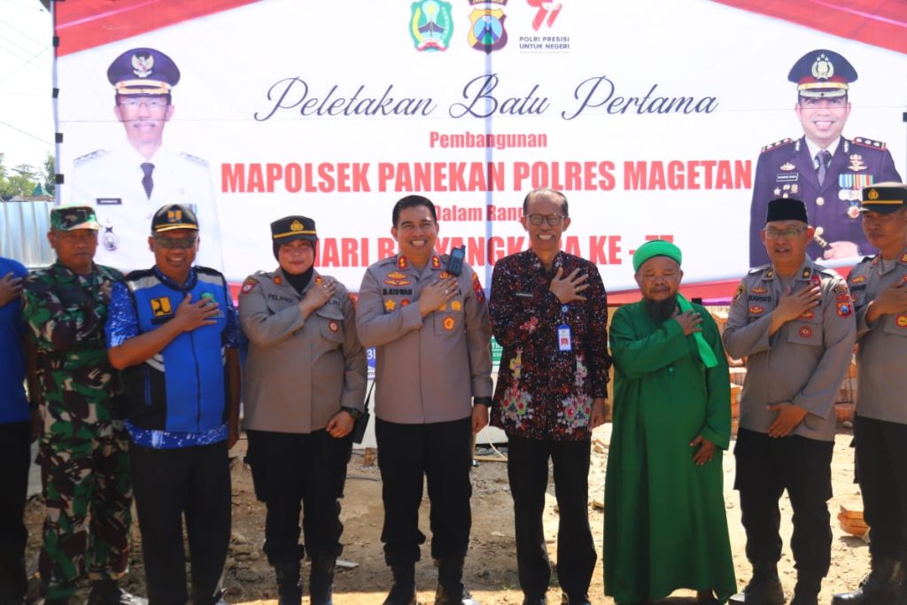 Pelaksanaan pembangunan ditandai dengan peletakan batu pertama oleh Bupati Magetan Suprawoto, didampingi Kapolres Magetan AKBP Muhammad Ridwan, Jum’at (9/6/2023) di lahan Mapolsek Panekan yang baru.