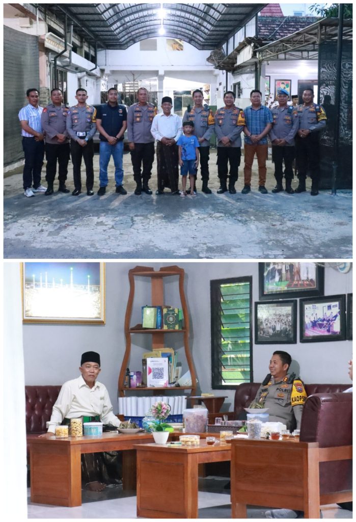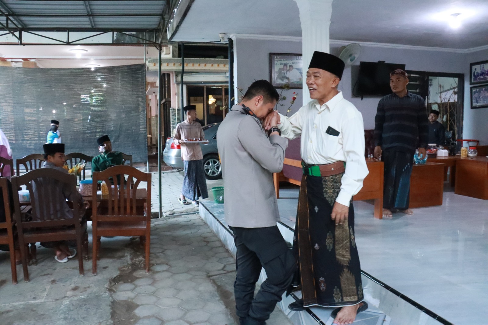 Bojonegoro, jendelanusanews.com Momen Hari Raya Idul Fitri 1445 Hijiriyah, Kapolres Bojonegoro, AKBP Mario Prahatinto, SH, SIK, M.Si didampingi Wakapolres, Kompol David Manurung dan Pejabat utama (PJU) Polres Bojonegoro melaksanakan kunjungan silaturahmi dengan tokoh agama yaitu Ketua Majelis Ulama Indonesia (MUI) Bojonegoro sekaligus pengasuh pondok pesantren Al Rosyid, KH. Alamul Huda di kediamannya jalan KH. R. Moh Rosyid Desa Ngumpak Dalem Kecamatan Dander Kabupaten Bojonegoro, Jum’at (12/4/2024) sore.