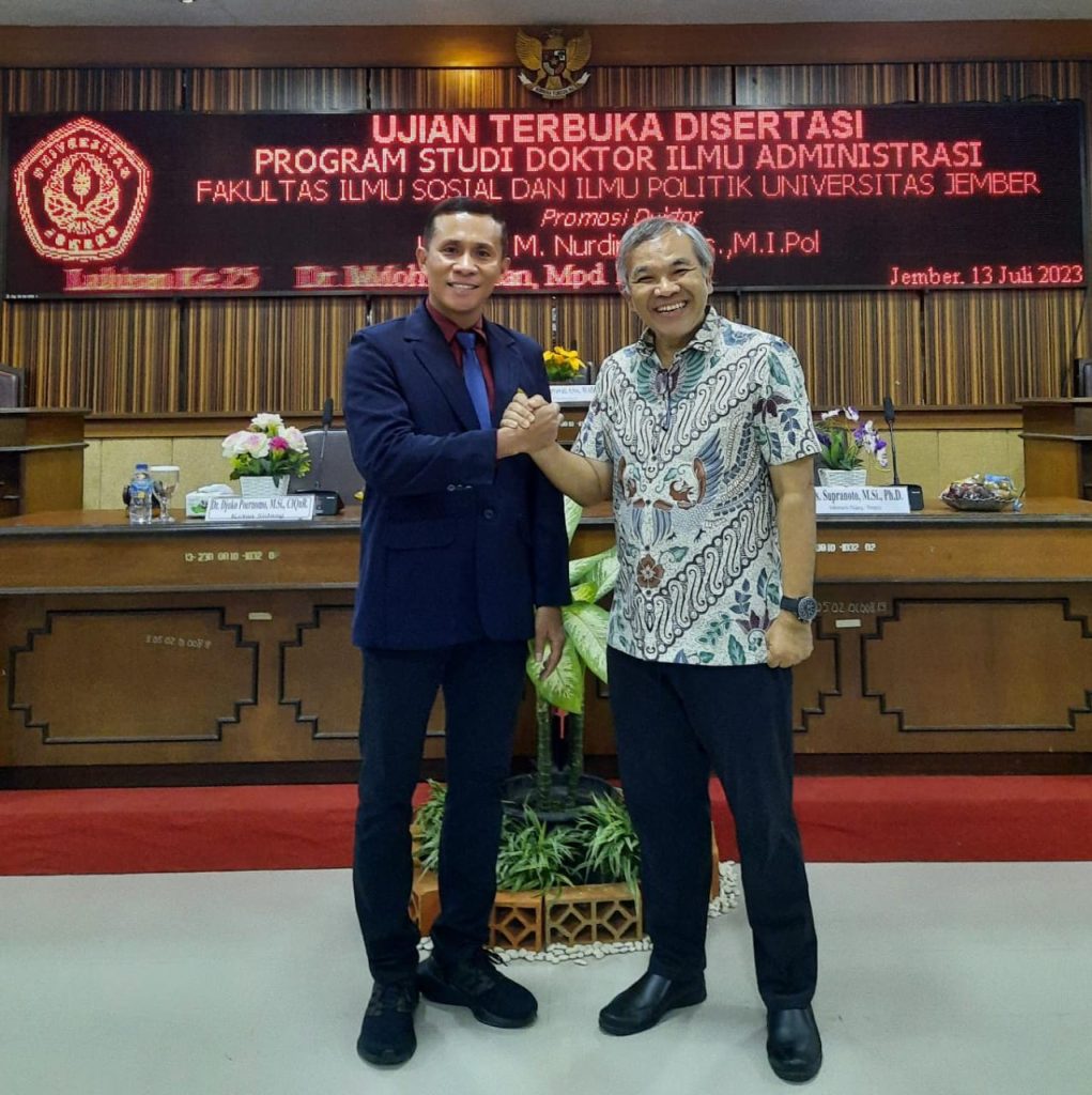 Agenda utamanya di Jember menghadiri Promosi Doktor La Ode Muhammad Nurdin di Fisip Universitas Jember. Wakil Asisten Teritorial Kodam V/Brawijaya itu sudah seperti adik Dr Aqua.