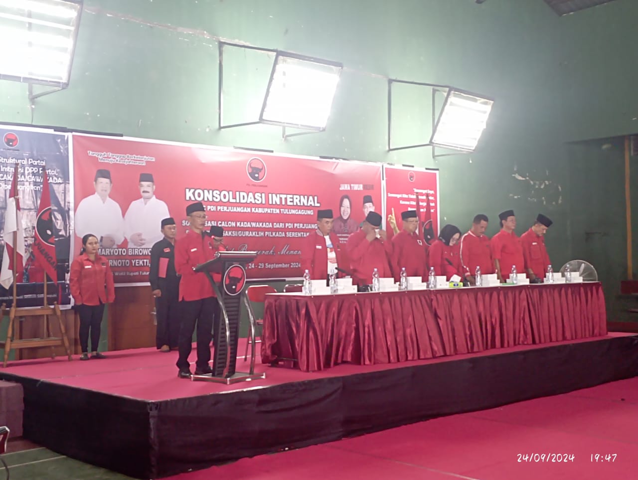 Jendelanusanews.com, Tulungagung-Partai Demokrasi Indonesia Perjuangan (PDIP) menggelar konsolidasi internal di GOR Rejoagung, Tulungagung ,dalam rangka memperkuat strategi pemenangan calon bupati dan gubernur pada pemilihan mendatang. Kegiatan ini dihadiri oleh seluruh pengurus dan kader partai dari DAvil 1 Tulungagung .seluruh PAC Ranting dan Anak ranting dari tingkat dusun dan RT,RW,