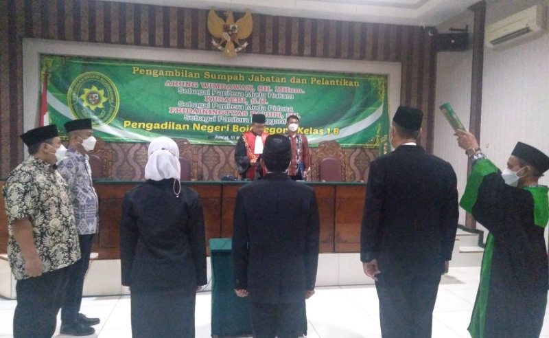 Pejabat yang dilantik adalah Fridainingtyas Palupl, sebelumnya sebagai staf dan dilantik sebagai Panitera Pengganti. Kusairi, sebelumnya adalah Panitera Muda Hukum dan jabatan barunya, Panitera Muda Pidana. Kemudian, Arung Wimbawan dengan jabatan baru Panitera Muda Hukum, yang sebelumnya menduduki Panitera Pengganti.