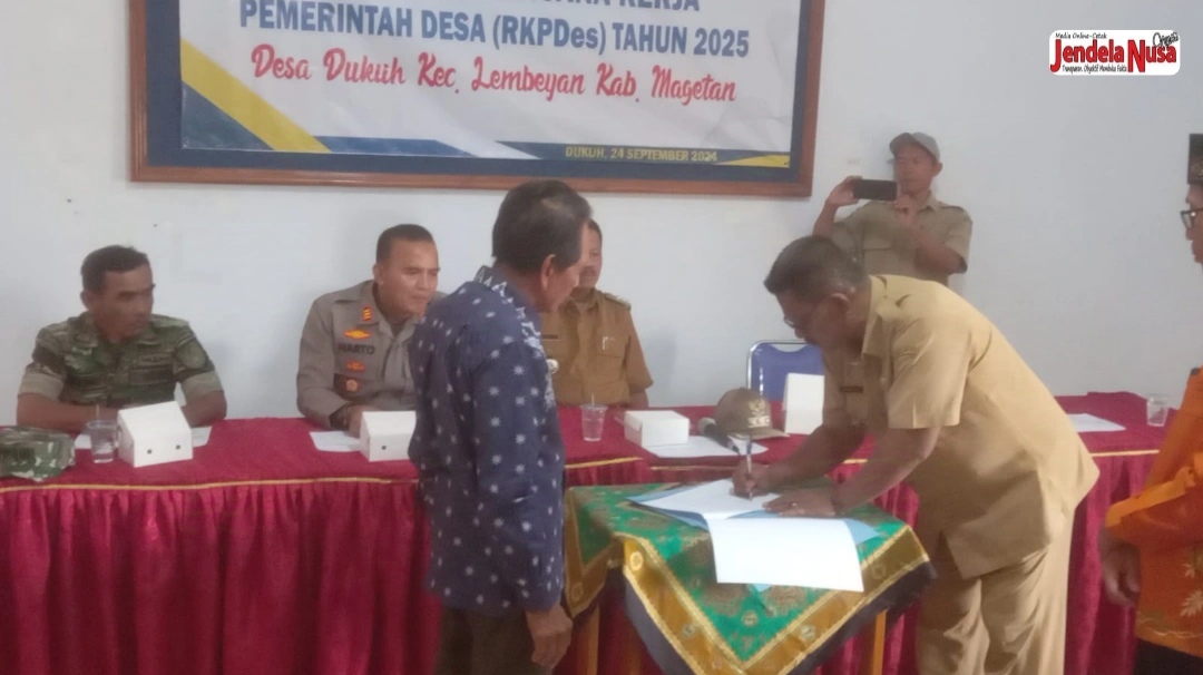 Magetan, jendelanusanews.com – PemDes Dukuh, Kecamatan Lembeyan, Kabupaten Magetan, Jawa Timur, melaksanakan kegiatan wajib tahunan musyawarah penetapan Rencana Kerja Pemerintah Desa (RKPDes) tahun 2025, Selasa (24/09/2024).