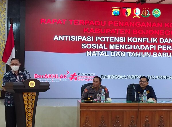 Pj Sekretaris Daerah Bojonegoro Djoko Lukito menyampaikan, menjelang nataru, perlu adanya koordinasi yang baik untuk meminimalisir gesekan antar kelompok. Tim terpadu juga perlu meningkatkan pengawasan dan edukasi kepada masyarakat agar tidak mudah terprovokasi oleh informasi yang beredar di media sosial.