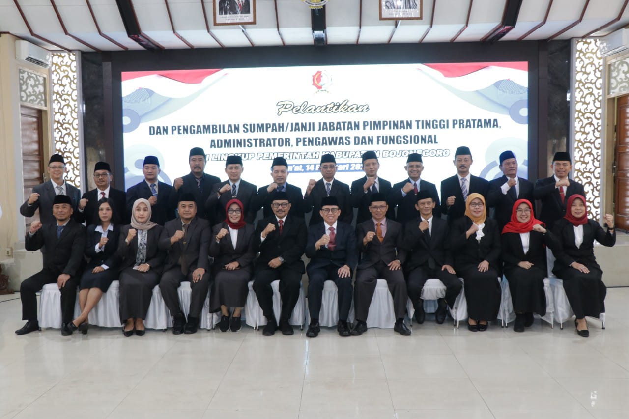 Pelaksanaan pelantikan berlangsung di Aula Gedung Angling Dharmo Pemkab Bojonegoro pada Jumat, 14 Februari 2025. Adapun, berdasarkan surat keputusan Bupati Bojonegoro No : 821.2/25/412.301/2025