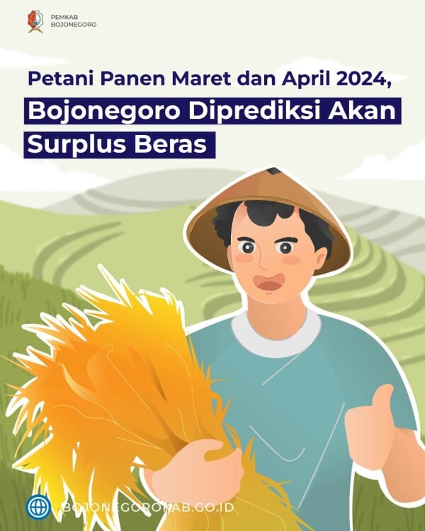 Bojonegoro, Jendelanusanews. Com. Pada musim panen Maret dan April 2024, Kabupaten Bojonegoro diprediksi akan mengalami surplus produksi beras. Surplus produksi beras ini akan menjadi kontribusi penting dalam menjaga ketersediaan beras dan penurunan angka inflasi.