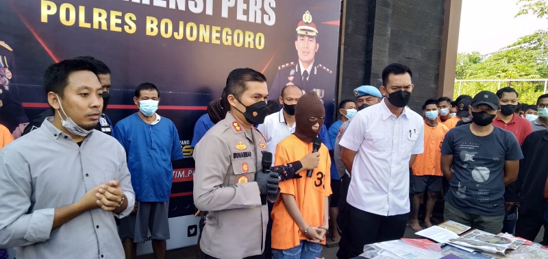 Di hadapan puluhan jurnalis saat konferensi pers, yang dipimpin langsung Kapolres Bojonegoro, AKBP Muhammad, Kamis (7/4/2022), didampingi Kasubag Humas, Satreskim dan jajaran berhasil mengamankan tersangka dan barang bukti di Mapolres Bojonegoro.