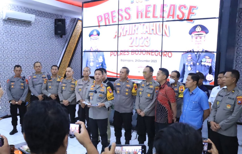 Bojonegoro, jendelanusanews.com – Polres Bojonegoro siap mengamankan rangkaian perayaan Tahun Baru 2024. Kapolres Bojonegoro, AKBP Mario Prahatinto, SH, SIK, M.Si mengimbau kepada masyarakat menjelang malam pergantian Tahun Baru untuk berpartisipasi menjaga kamtibmas dan tidak berlebihan salah satunya tak melakukan konvoi.
