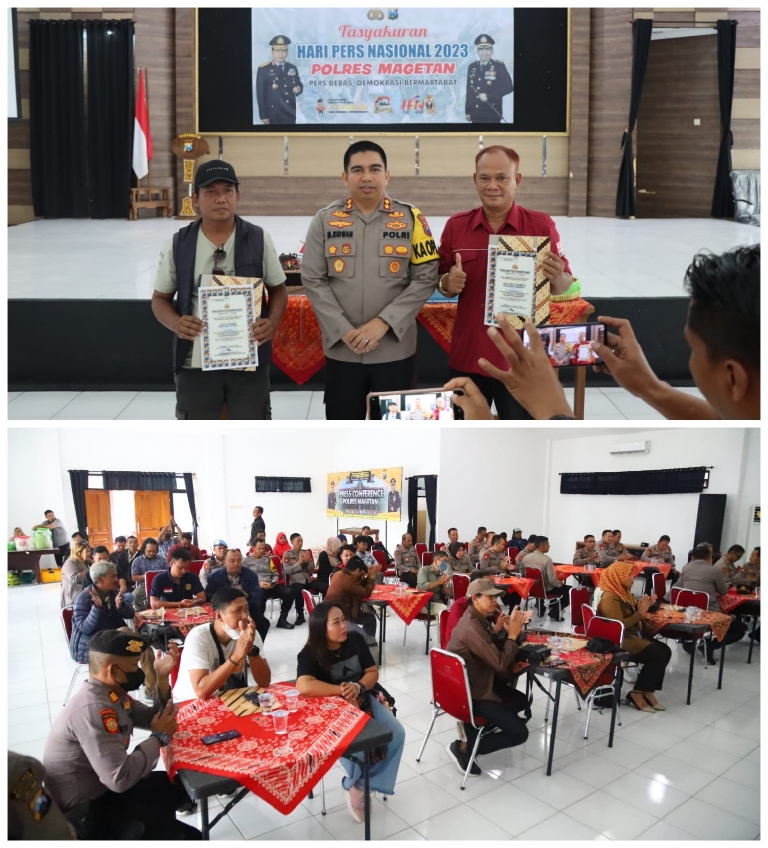 “Selamat Hari Pers Nasional, semoga sinergitas kemitraan antara jurnalis dan Polri terus terjalin dalam rangka memberikan informasi dan edukasi kepada masyarakat,” kata Kapolres di acara HPN di Aula Pesat Gatra Polres Magetan, Kamis (9/2/2023).