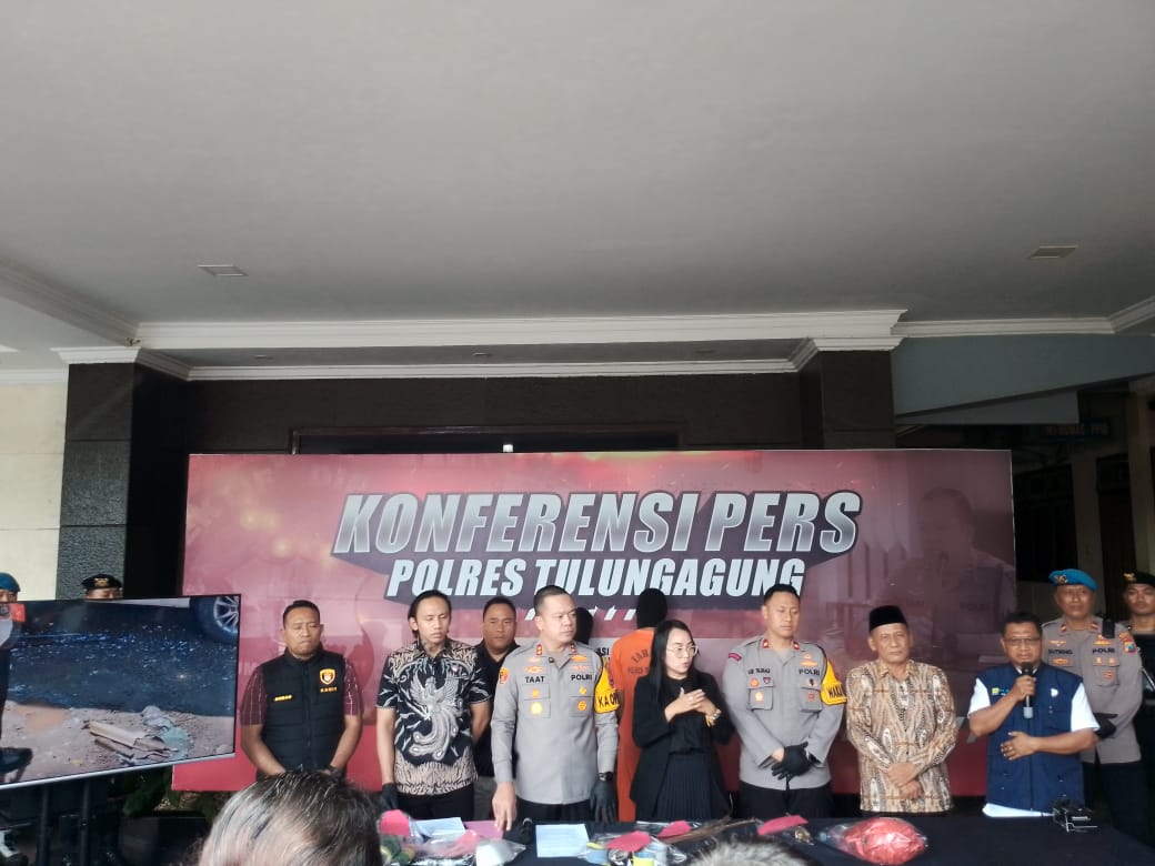 Jendelanusanews.com,Tulungagung– Polres Tulungagung mengumumkan perkembangan penyidikan kasus ledakan petasan yang diangkut menggunakan balon udara di Kecamatan Bandung, Kabupaten Tulungagung. Hal ini disampaikan oleh Kapolres Tulungagung AKBP Muhammad Taat Resdi dalam konferensi pers yang didampingi pejabat utama Polres, Kepala PLN UPT Madiun ULTG Kediri Sunardi, dan Ketua Asosiasi Kepala Desa (AKD) Kabupaten Tulungagung, Muhammad Saleh, di Mapolres Tulungagung pada Jumat (4/4/2025).
