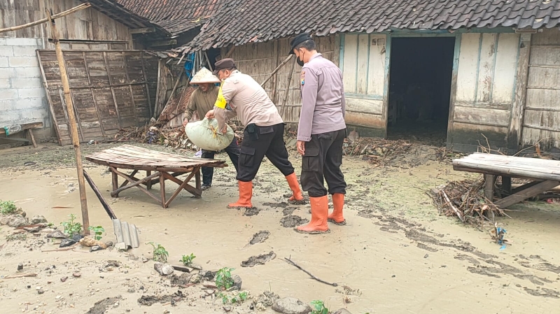 Polsek Karangjati dan Rakyat, Gotongroyong Bersihkan Sisa Dampak Banjir